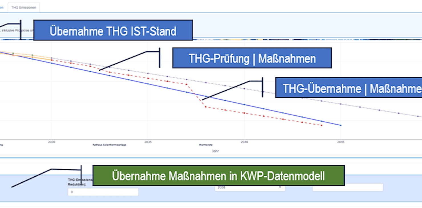 Wirkungsanalyse von Maßnahmen – Klimaschutzmaßnahmen lassen sich systematisch abbilden und hinsichtlich ihrer Auswirkungen auf Energieverbrauch und CO₂-Emissionen bewerten.